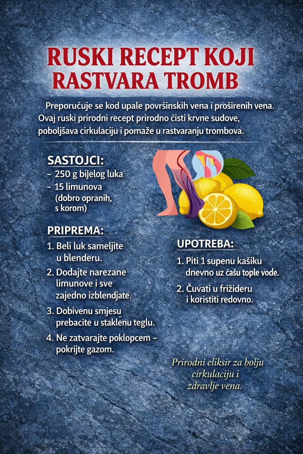 Vaša jetra je jedan od najvažnijih organa u vašem tijelu. Neumorno radi na detoksikaciji štetnih tvari, preradi hranjivih tvari i podršci probavi. Ali s brzim modernim načinom života, lošom prehranom i izloženošću toksinima, vaša jetra može postati preopterećena. Tu u pomoć priskače bakin stari recept. Recept je toliko učinkovit da se kaže da je 150 […]
