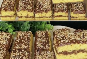 Biskvitnu smjesu izlijte u namaščen i pobrašnjen kalup za pečenje (25×35 cm) i pecite 15-20 minuta na temperaturi od 180 °C. Čačkalicom provjerite je i tijesto pečeno.
