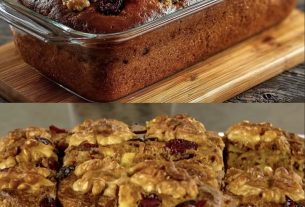 Sve sastojke umutiti u jednoličnu smjesu, sipati u podmazan pleh i odozgo staviti malo suhog grožđa i sjeckanih oraha. Peći na 180 stepeni oko 20 minuta, piše “Bonapeti“…