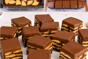Zatim redajte tortu u tepsiju (35 x 25 cm.): Keks, Fil, Slag – Keks, Fil, Slag itd. Tako napraviti 4 reda i obloziti tortu sa slagom.