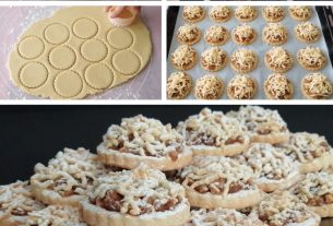Staviti na pleh, koji ste prekrili sa papirom za pecenje i peci ih dok vam blago ne porumene na 165-170C u zavisnosti od vase rerne.(na mojoj rerni je 160C i peku se oko 18 minuta)