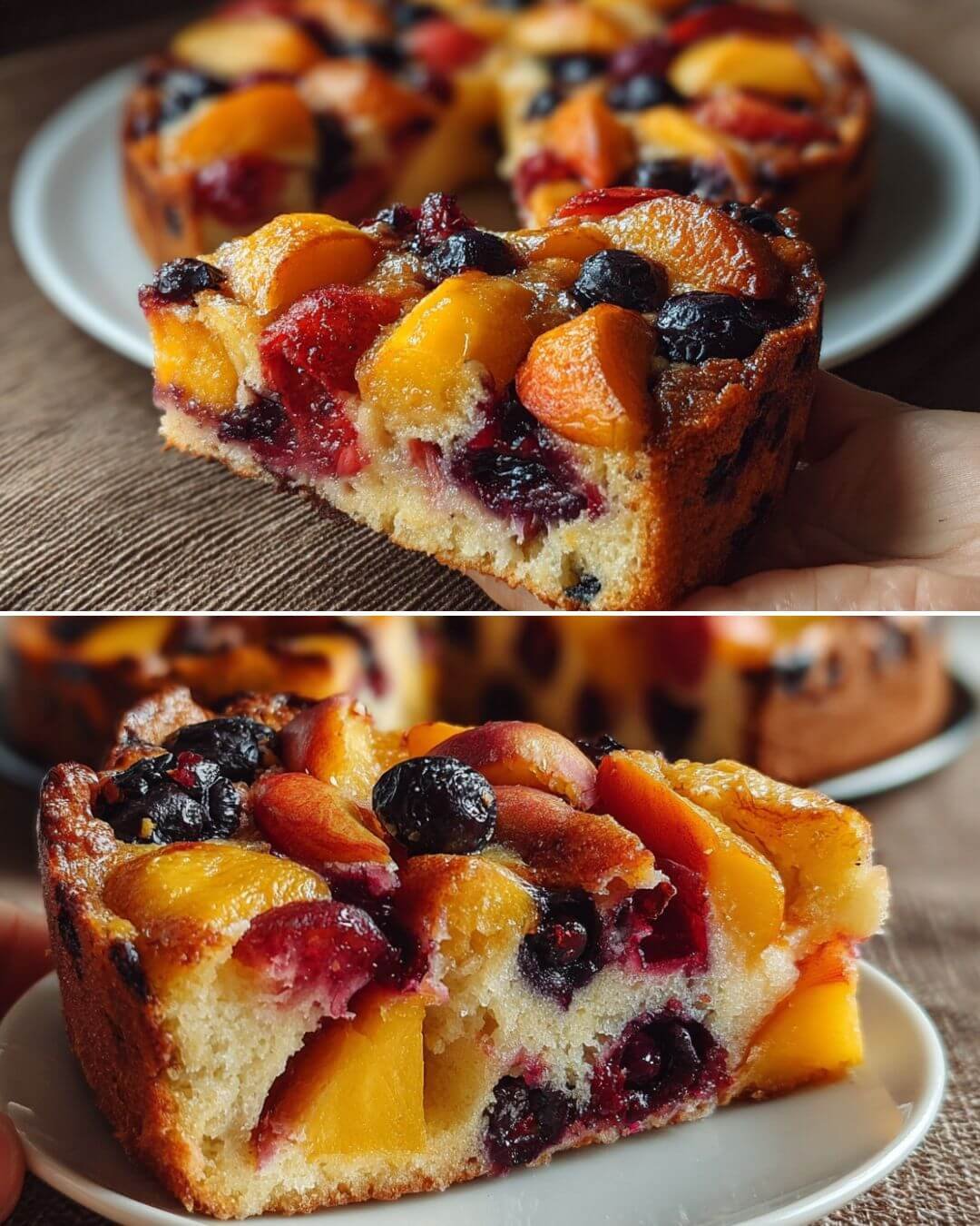 Dodaj voće u smjesu i lagano promiješaj. Izlij u kalup od 14 cm obložen papirom za pečenje.