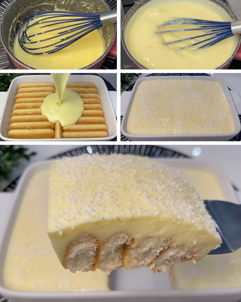 Prelijte kremu preko složenih piškota.