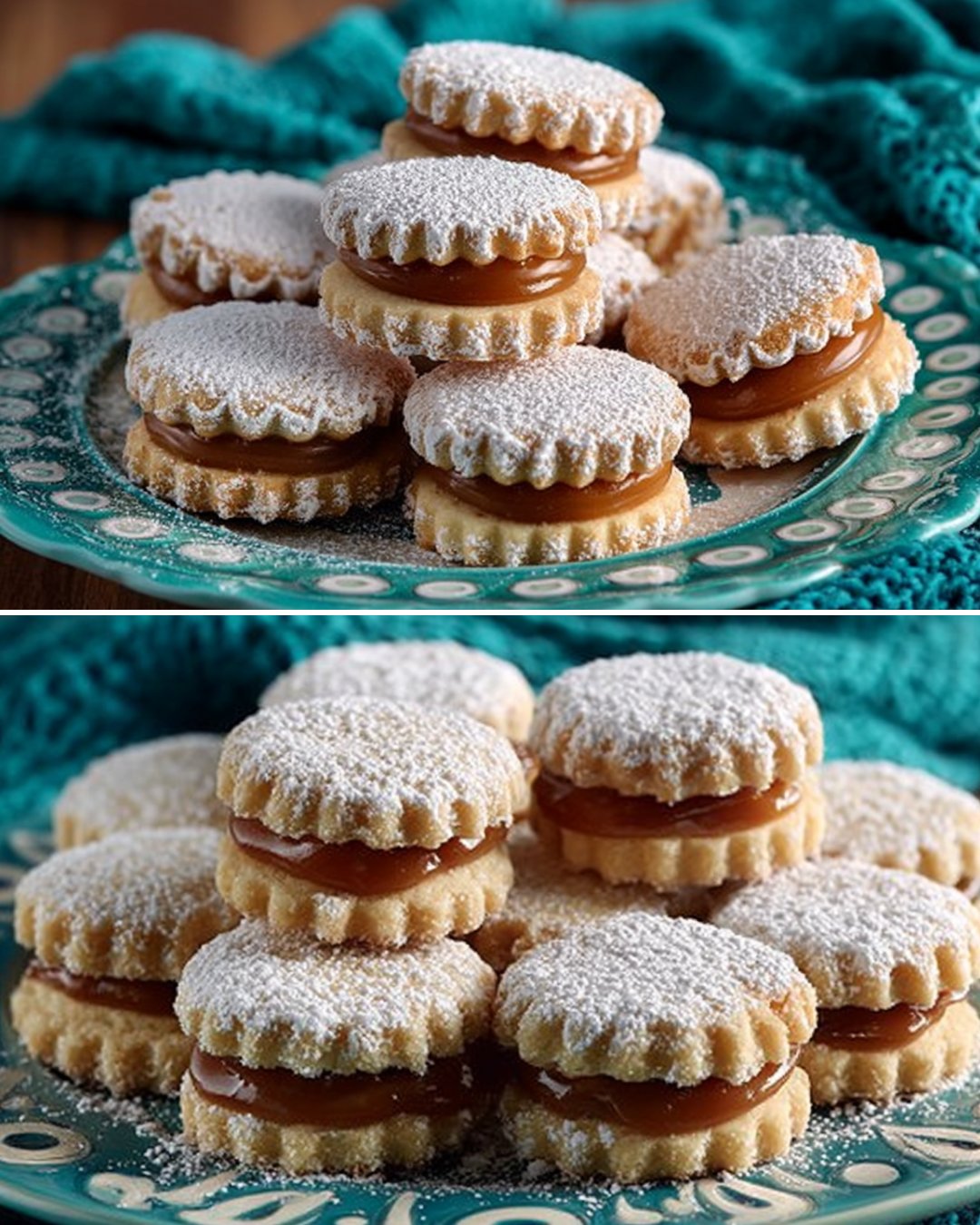 * Na ravnu stranu polovine kolačića tanko premažite dulce de leche.
