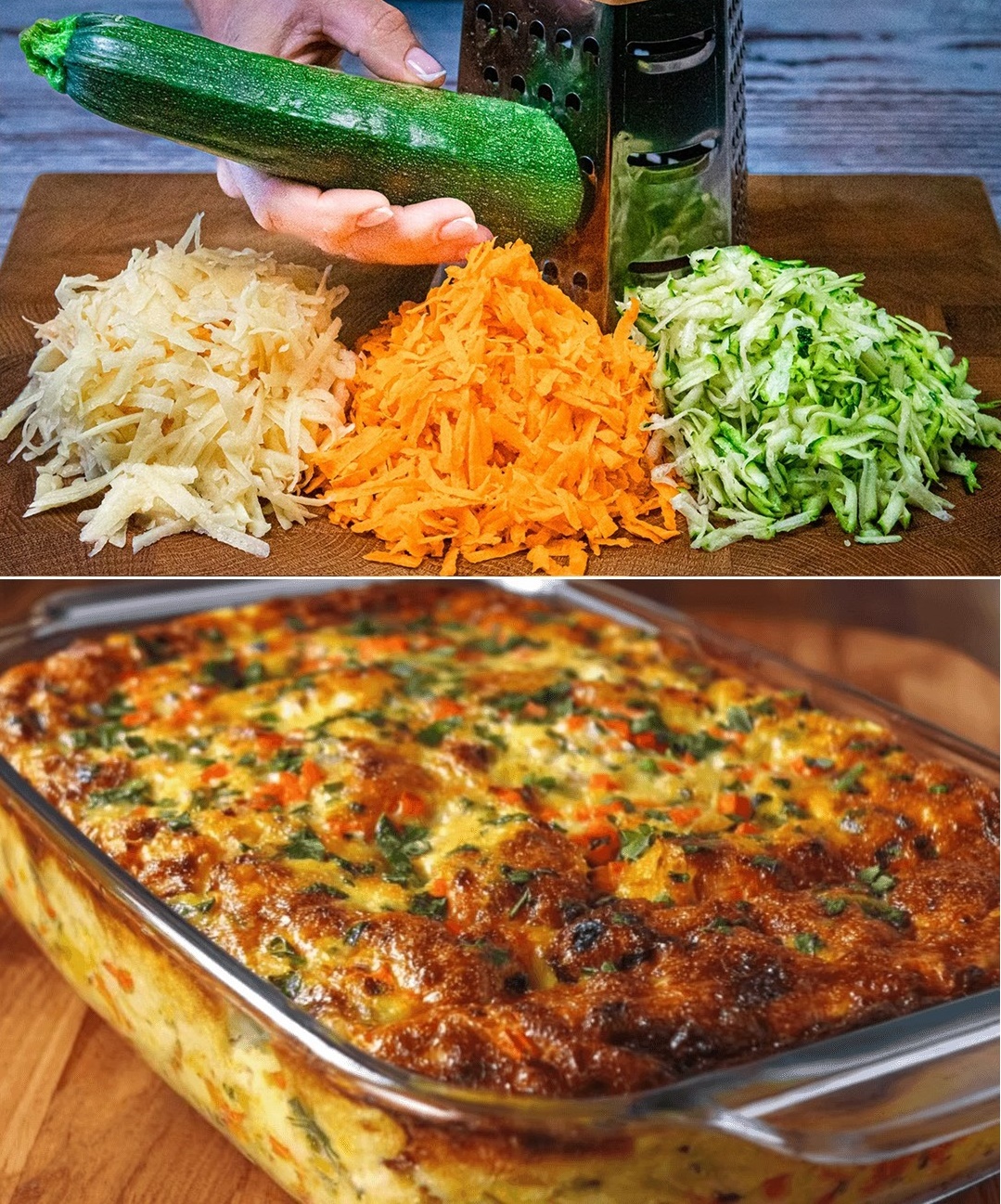 Svo povrće, osim češnjaka, temeljito operite i ogulite te ga zatim naribajte na krupnije ribe. Zagrijte pećnicu na temperaturu od 200 stupnjeva Celzijusa (392 stupnja Fahrenheita).
