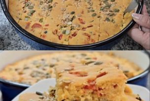 Jelo stavite u pećnicu prethodno zagrijanu na 180 stupnjeva Celzijevih (356 stupnjeva Fahrenheita) i ostavite da se peče 50 minuta ili dok ne dobije zlatnosmeđu nijansu. Može se poslužiti toplo ili hladno, dobro funkcionira kao glavno jelo ili prilog, a izvrsno se slaže sa svježom salatom ili hrskavim kruhom.