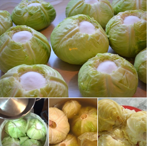 Zreli kupus, čvrstih glavica, očistiti od oštečenih listova i oštrim nožem izdubiti “korjen”. Napravljeno udubljenje ispuniti solju.