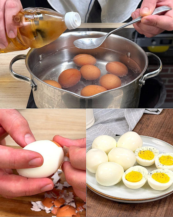 Ostavite jaja 10–15 minuta na sobnoj temperaturi. Napunite šerpu dovoljno vode da prekrije jaja i dodajte 1 kašiku sirćeta. Zagrijte vodu do ključanja. Pažljivo spustite jaja u ključalu vodu. Smanjite vatru da ključanje bude blago.