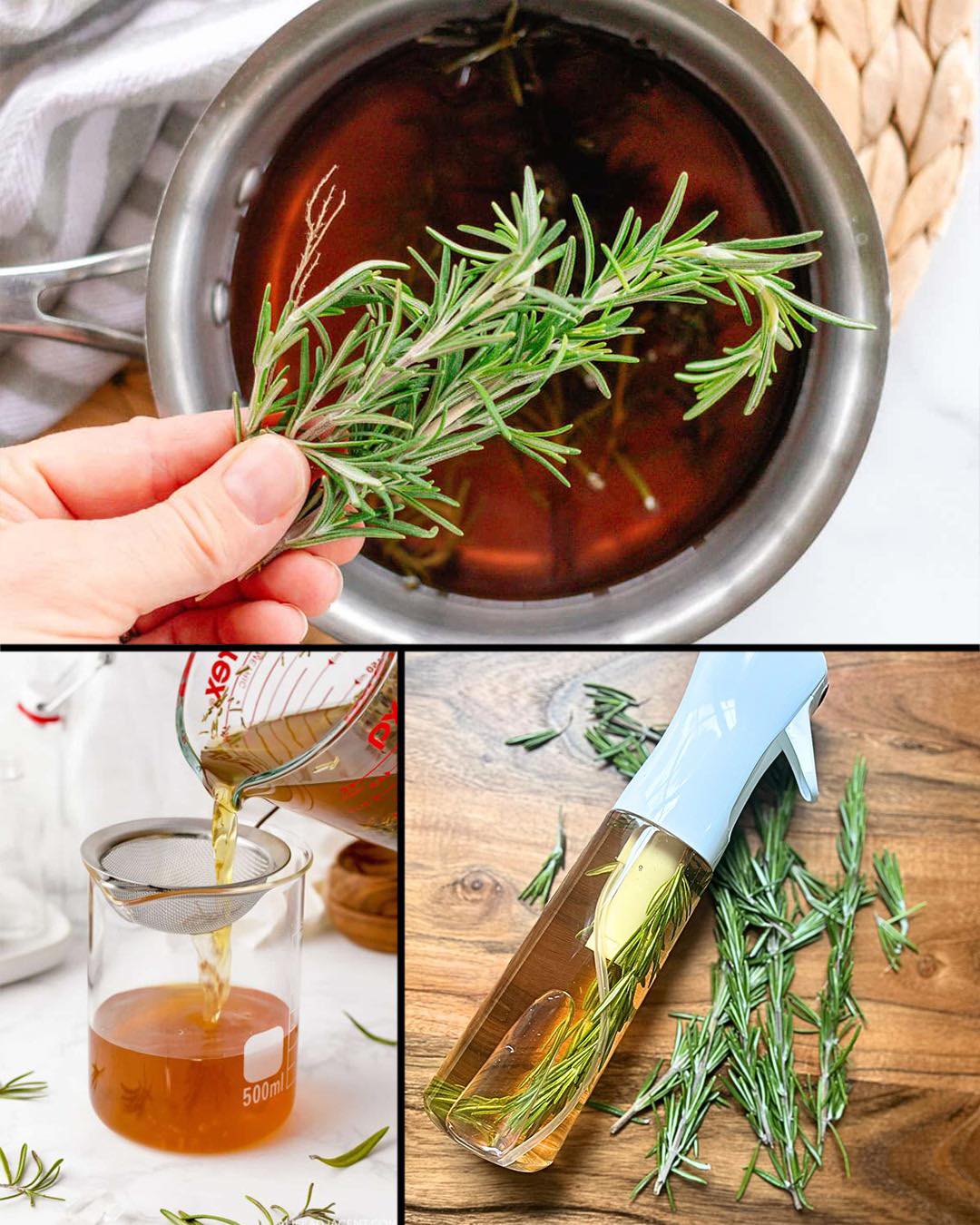 Brza metoda: Zagrijte ulje sa ružmarinom na najnižoj temperaturi 3–4 sata. Ne smije ključati. Ohladite prije cijeđenja.