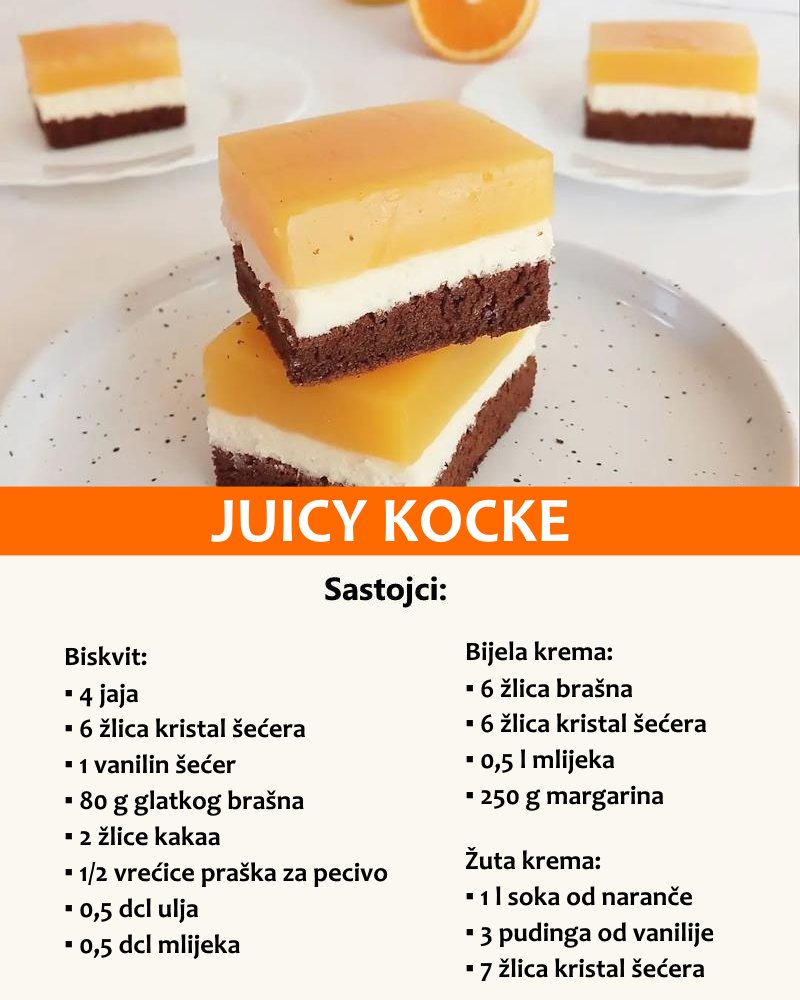 Prekrasan kolač koji će vas oduševiti izgledom i okusom. Jednostavne, kremaste i sočne juicy kocke odličan su izbor za sve prilike.