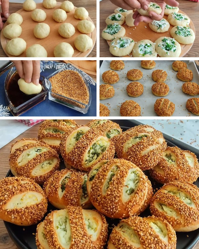 Oblikovane poğače prvo umočiti u smjesu pekmeza i vode, a zatim u susam.