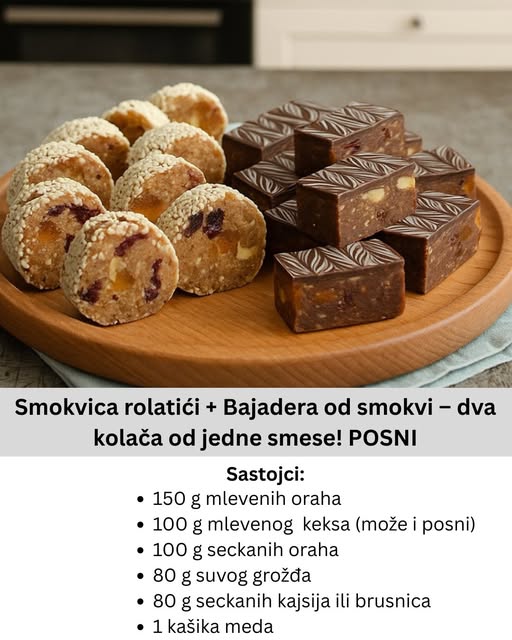 Jedna smesa – dva fenomenalna kolača: zdravi, mirisni, puni suhog voća i orašastih plodova. Bez pečenja, savršeni za slavsku trpezu, poklone ili zdravu poslasticu uz kafu!