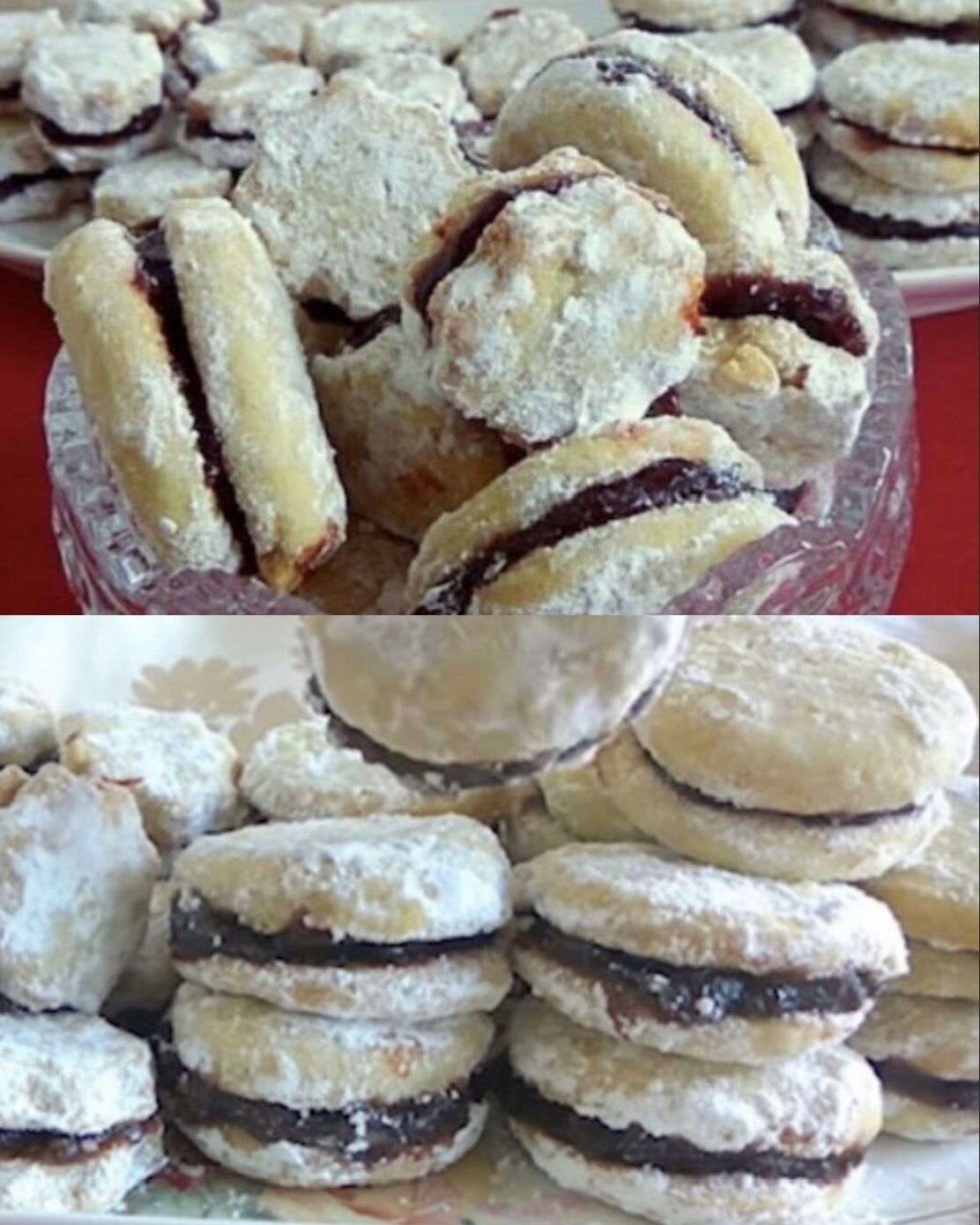7. Pečene kolače ostavite da se malo ohlade, pa ih filujte džemom — spajajte dva po dva i dobijete sendvič kolačiće. Po želji, vanilice uvaljajte u šećer u prahu (možete dodati i vanilu za miris).