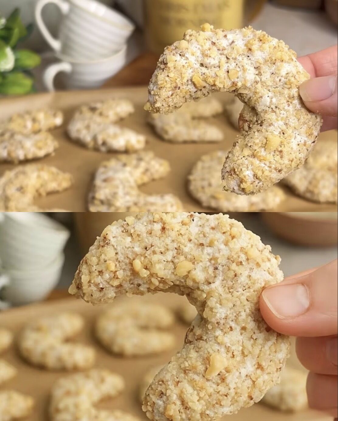 Ovi nježni polumjeseci kolačići pravi su praznični ukras – jednostavni, bez brašna, bez glutena i pripremljeni sa samo tri sastojka.