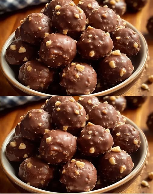 Umakanje i ukrašavanje: Svaku ohlađenu kuglicu potopite u otopljenu čokoladu, potpuno ili delimično. Pre nego što se čokolada stvrdne, odmah je pospite dodatnim usitnjenim čokoladnim mrvicama, morskom solju ili mrvicama.