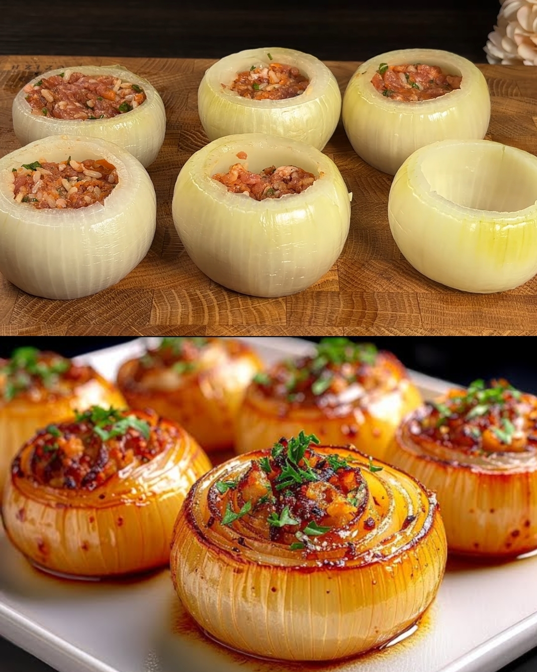 Ako ste ikada mislili da su luk samo pozadinski ukus, pripremite se da budete oduševljeni. Ovaj Zapečeni luk punjen sirom i mesom pretvara običan luk u glavnu zvezdu stola, punjen sočnom smesom od mlevenog mesa, pirinča, začina i pečuraka, a zatim pečen dok ne postane mekan i prekriven zlatnom, topljenom korom sira. Jelo je istovremeno rustično i impresivno, savršeno za porodičnu večeru ili večeru za goste kada želite poslužiti nešto neočekivano. Slatko i blago pečen luk savršeno se slaže sa bogatstvom fila, stvarajući zapečenu posudu koja je zasitna, a opet uravnotežena.
