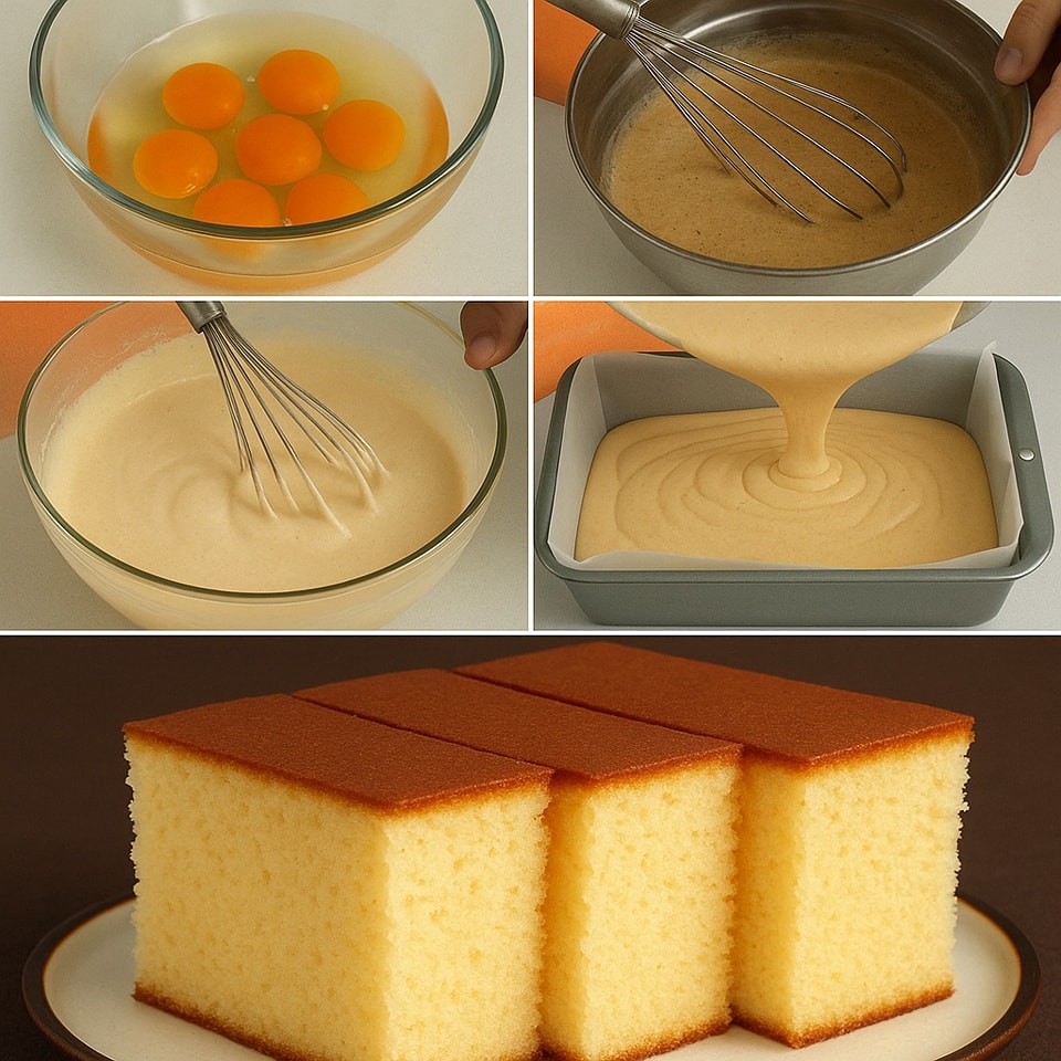 5. Pecite u prethodno zagrijanoj rerni na 180°C 10–15 minuta dok vrh ne potamni. Odmah prekrijte kuhinjskim papirom, smanjite temperaturu na 170°C i nastavite peći ukupno oko 55 minuta. Provjerite čačkalicom – ako izađe čista, biskvit je pečen.