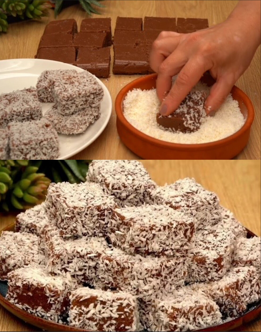Svaku kocku uvaljajte u kokosove mrvice za dodatni ukus i dekorativni izgled.