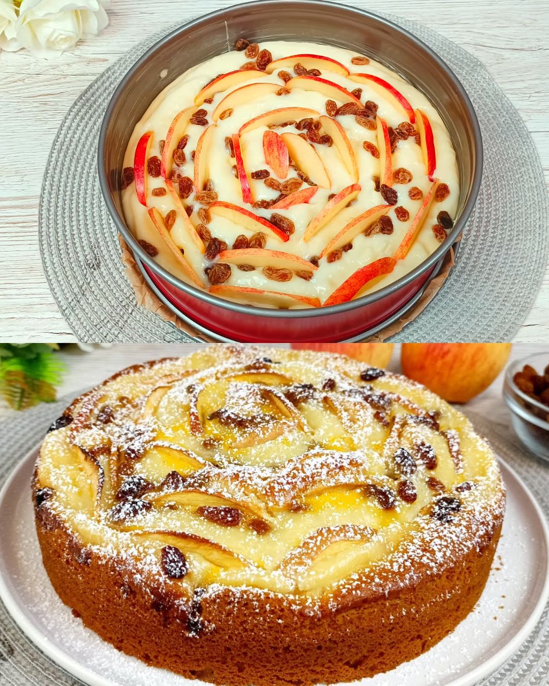 Po tijestu rasporediti jabuke i grožđice.