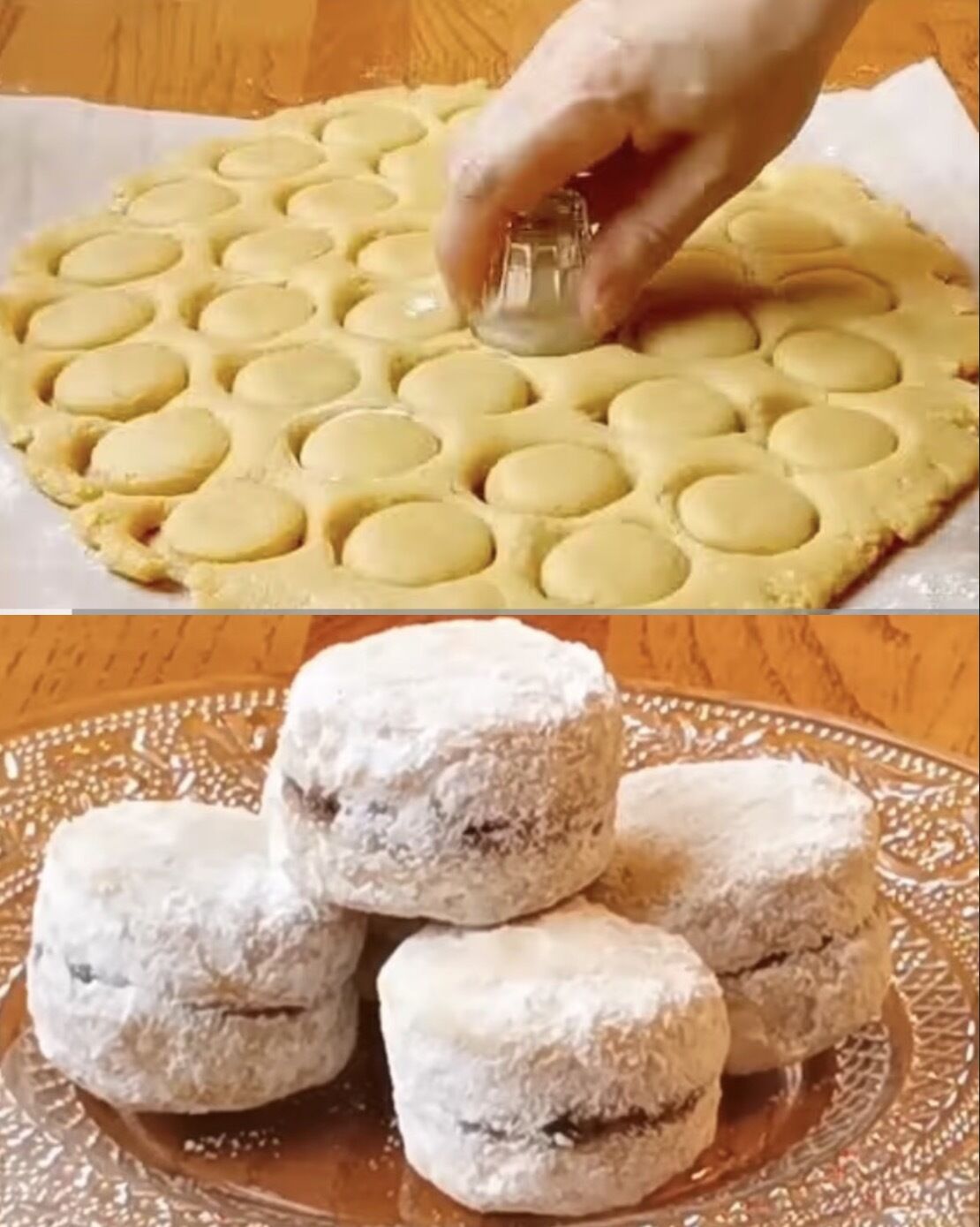 8. Ohladite kolačiće, spajajte po dva sa džemom po izboru, i uvaljajte u mešavinu šećera u prahu i vanilin šećera.