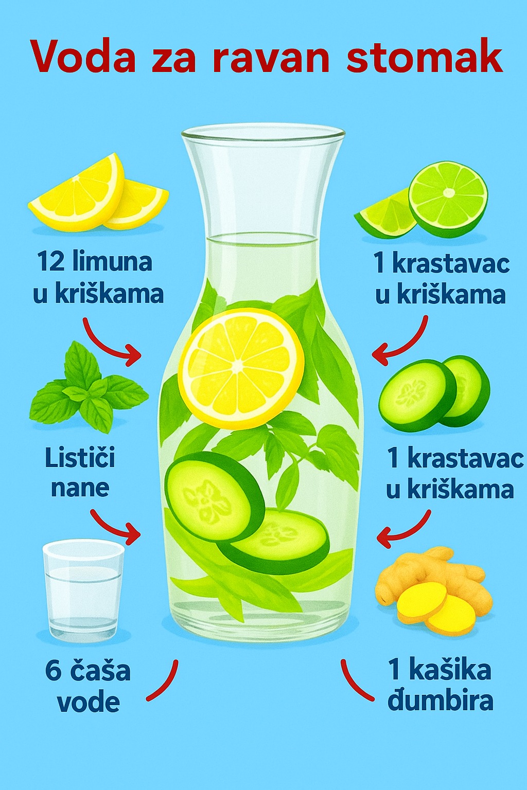 Koristite vodu za ravan stomak kao zdravu alternativu gaziranim pićima, sokovima ili zaslađenom ledenom čaju. Održava vas hidriranim bez dodatog šećera ili kalorija.